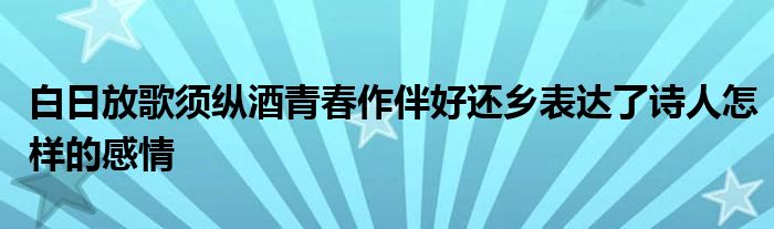 关于白日放歌须纵酒青春作伴好还乡表达了诗人怎样的感情这个很多人还不知道,今天菲菲来为大家解答以上的问题,现在让我们一起来看看吧!
