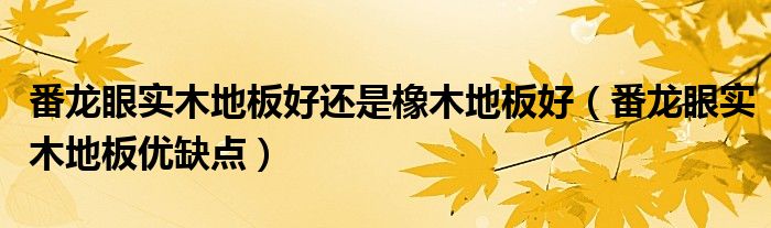 关于番龙眼实木地板好还是橡木地板好,番龙眼实木地板优缺点这个很多人还不知道,今天菲菲来为大家解答以上的问题,现在让我们一起来看看吧!