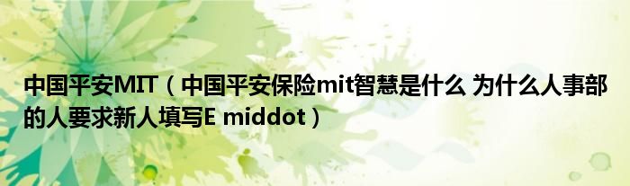 关于中国平安MIT,中国平安保险mit智慧是什么 为什么人事部的人要求新人填写E middot这个很多人还不知道,今天菲菲来为大家解答以上的问题,现在让我们一起来看看吧!