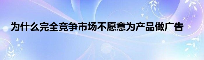 关于为什么完全竞争市场不愿意为产品做广告这个很多人还不知道,今天菲菲来为大家解答以上的问题,现在让我们一起来看看吧!