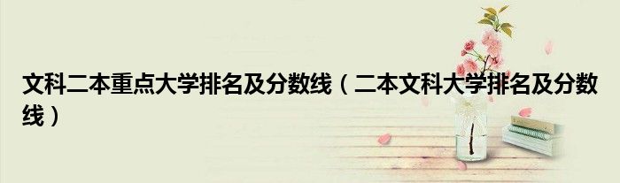 1、二本文科大学排名及分数线:二、二本,即本科第二批(又称本科二批),是指放在中国高考录取招生的时候在本科层次第二批次招生的学校,录取线一般要达到本科线。