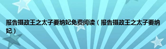 关于报告摄政王之太子要纳妃免费阅读,报告摄政王之太子要纳妃这个很多人还不知道,今天菲菲来为大家解答以上的问题,现在让我们一起来看看吧!