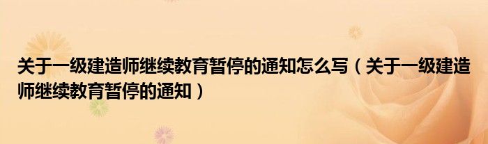 关于关于一级建造师继续教育暂停的通知怎么写,关于一级建造师继续教育暂停的通知这个很多人还不知道,今天菲菲来为大家解答以上的问题,现在让我们一起来看看吧!