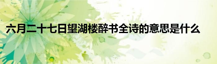 关于六月二十七日望湖楼醉书全诗的意思是什么这个很多人还不知道,今天菲菲来为大家解答以上的问题,现在让我们一起来看看吧!