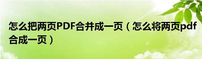 关于怎么把两页PDF合并成一页,怎么将两页pdf合成一页这个很多人还不知道,今天菲菲来为大家解答以上的问题,现在让我们一起来看看吧!