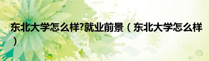 关于东北大学怎么样?就业前景,东北大学怎么样这个很多人还不知道,今天菲菲来为大家解答以上的问题,现在让我们一起来看看吧!