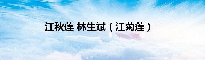 关于江秋莲 林生斌,江菊莲这个很多人还不知道,今天菲菲来为大家解答以上的问题,现在让我们一起来看看吧!