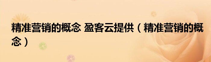 关于精准营销的概念 盈客云提供,精准营销的概念这个很多人还不知道,今天菲菲来为大家解答以上的问题,现在让我们一起来看看吧!