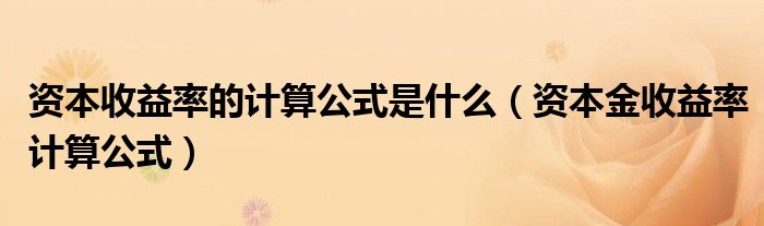 关于资本收益率的计算公式是什么,资本金收益率计算公式这个很多人还不知道,今天菲菲来为大家解答以上的问题,现在让我们一起来看看吧!