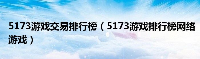 5173游戏交易排行榜(5173游戏排行榜网络游戏)