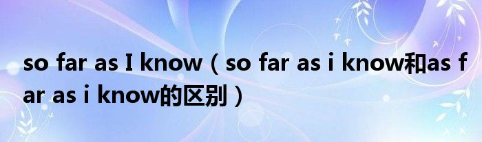 关于so far as I know,so far as i know和as far as i know的区别这个很多人还不知道,今天菲菲来为大家解答以上的问题,现在让我们一起来看看吧!