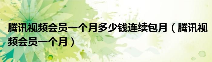 关于腾讯视频会员一个月多少钱连续包月,腾讯视频会员一个月这个很多人还不知道,今天菲菲来为大家解答以上的问题,现在让我们一起来看看吧!
