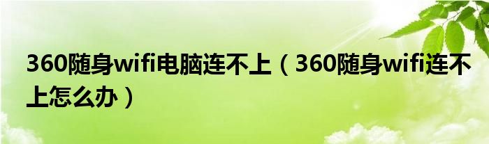 关于360随身wifi电脑连不上,360随身wifi连不上怎么办这个很多人还不知道,今天菲菲来为大家解答以上的问题,现在让我们一起来看看吧!