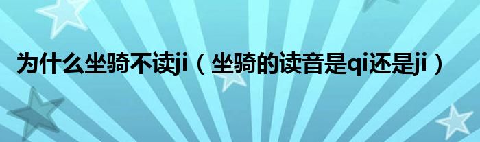 为什么坐骑不读ji(坐骑的读音是qi还是ji)