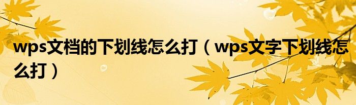 关于wps文档的下划线怎么打,wps文字下划线怎么打这个很多人还不知道,今天菲菲来为大家解答以上的问题,现在让我们一起来看看吧!