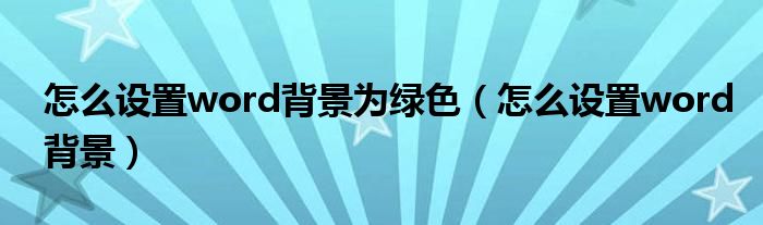 关于怎么设置word背景为绿色,怎么设置word背景这个很多人还不知道,今天菲菲来为大家解答以上的问题,现在让我们一起来看看吧!