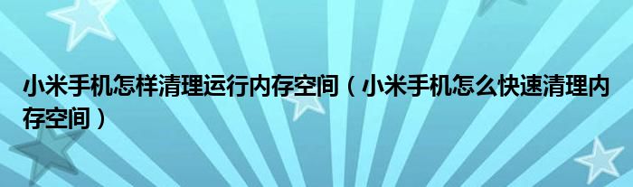 关于小米手机怎样清理运行内存空间,小米手机怎么快速清理内存空间这个很多人还不知道,今天菲菲来为大家解答以上的问题,现在让我们一起来看看吧!