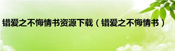 关于错爱之不悔情书资源下载,错爱之不悔情书这个很多人还不知道,今天菲菲来为大家解答以上的问题,现在让我们一起来看看吧!