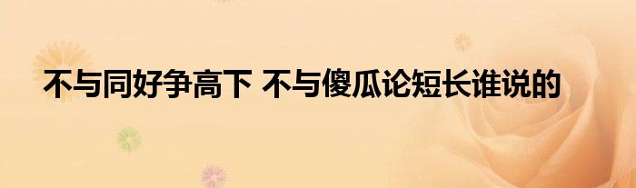 不与同好争高下 不与傻瓜论短长谁说的