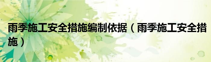 关于雨季施工安全措施编制依据,雨季施工安全措施这个很多人还不知道,今天菲菲来为大家解答以上的问题,现在让我们一起来看看吧!