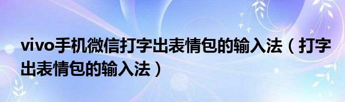 大家好,小晋来为大家解答以下问题,关于vivo手机微信打字出表情包的输入法,打字出表情包的输入法很多人还不知道,今天让我们一起来看看吧!