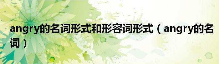 大家好,小晋来为大家解答以下问题,关于angry的名词形式和形容词形式,angry的名词很多人还不知道,今天让我们一起来看看吧!