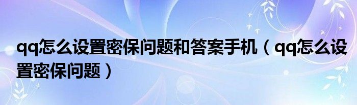 qq怎么设置密保问题和答案手机(qq怎么设置密保问题)
