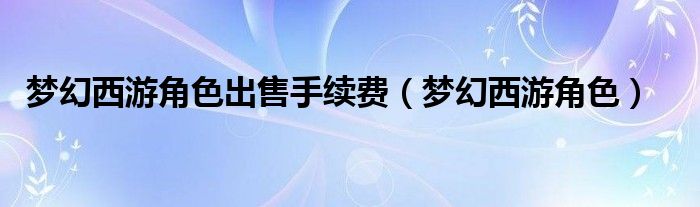 关于梦幻西游角色出售手续费,梦幻西游角色这个很多人还不知道,今天菲菲来为大家解答以上的问题,现在让我们一起来看看吧!