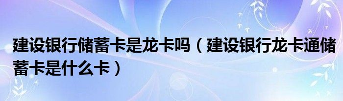关于建设银行储蓄卡是龙卡吗,建设银行龙卡通储蓄卡是什么卡这个很多人还不知道,今天菲菲来为大家解答以上的问题,现在让我们一起来看看吧!