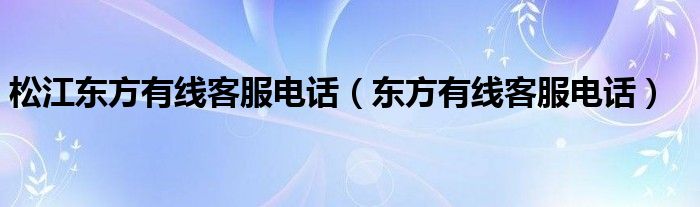 关于松江东方有线客服电话,东方有线客服电话这个很多人还不知道,今天菲菲来为大家解答以上的问题,现在让我们一起来看看吧!