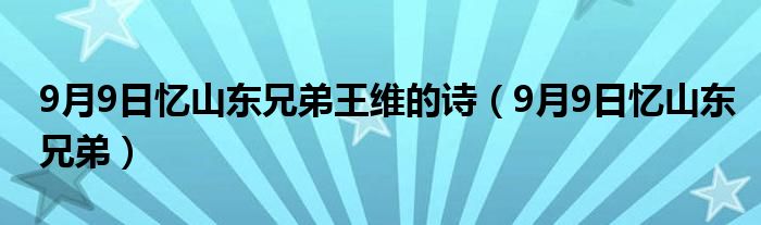11、”参考资料:百度百科-九月九日忆山东兄弟。