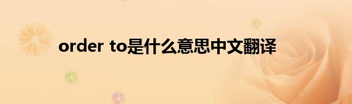 关于order to是什么意思中文翻译这个很多人还不知道,今天菲菲来为大家解答以上的问题,现在让我们一起来看看吧!
