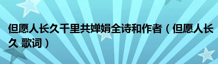 关于但愿人长久千里共婵娟全诗和作者,但愿人长久 歌词这个很多人还不知道,今天菲菲来为大家解答以上的问题,现在让我们一起来看看吧!
