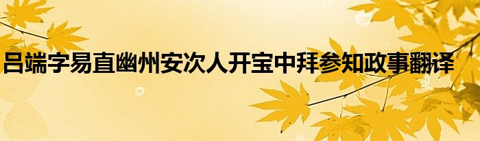 关于吕端字易直幽州安次人开宝中拜参知政事翻译这个很多人还不知道,今天菲菲来为大家解答以上的问题,现在让我们一起来看看吧!