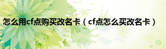关于怎么用cf点购买改名卡,cf点怎么买改名卡这个很多人还不知道,今天菲菲来为大家解答以上的问题,现在让我们一起来看看吧!