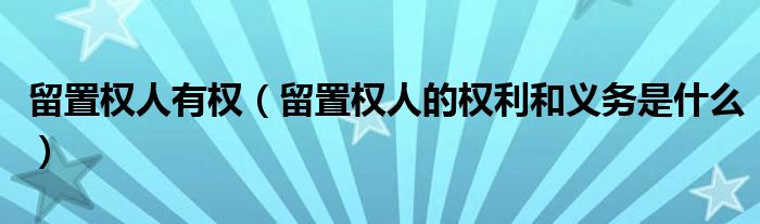 留置权人有权(留置权人的权利和义务是什么)