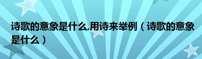关于诗歌的意象是什么,用诗来举例,诗歌的意象是什么这个很多人还不知道,今天菲菲来为大家解答以上的问题,现在让我们一起来看看吧!