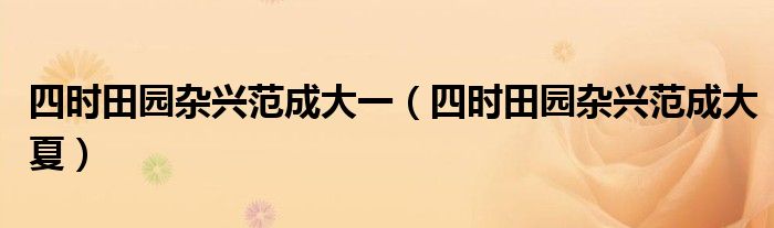 四时田园杂兴范成大一(四时田园杂兴范成大夏)