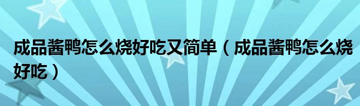 大家好,小晋来为大家解答以下问题,关于成品酱鸭怎么烧好吃又简单,成品酱鸭怎么烧好吃很多人还不知道,今天让我们一起来看看吧!