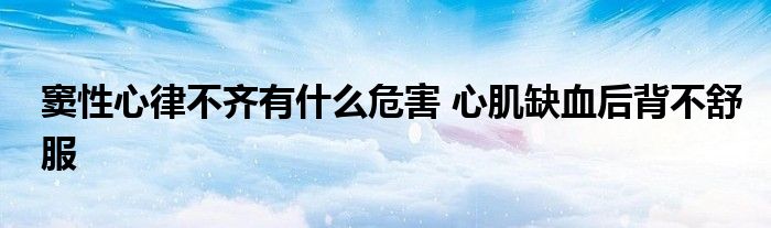 关于窦性心律不齐有什么危害 心肌缺血后背不舒服这个很多人还不知道,今天菲菲来为大家解答以上的问题,现在让我们一起来看看吧!