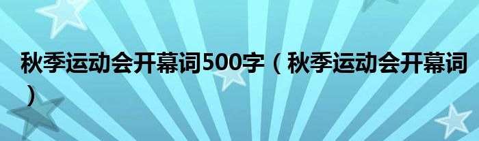 关于秋季运动会开幕词500字,秋季运动会开幕词这个很多人还不知道,今天菲菲来为大家解答以上的问题,现在让我们一起来看看吧!