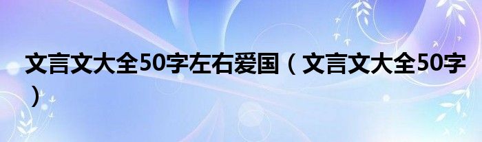 关于文言文大全50字左右爱国,文言文大全50字这个很多人还不知道,今天菲菲来为大家解答以上的问题,现在让我们一起来看看吧!