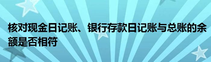 关于核对现金日记账、银行存款日记账与总账的余额是否相符这个很多人还不知道,今天菲菲来为大家解答以上的问题,现在让我们一起来看看吧!
