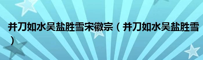 关于并刀如水吴盐胜雪宋徽宗,并刀如水吴盐胜雪这个很多人还不知道,今天菲菲来为大家解答以上的问题,现在让我们一起来看看吧!