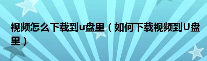 关于视频怎么下载到u盘里,如何下载视频到U盘里这个很多人还不知道,今天菲菲来为大家解答以上的问题,现在让我们一起来看看吧!