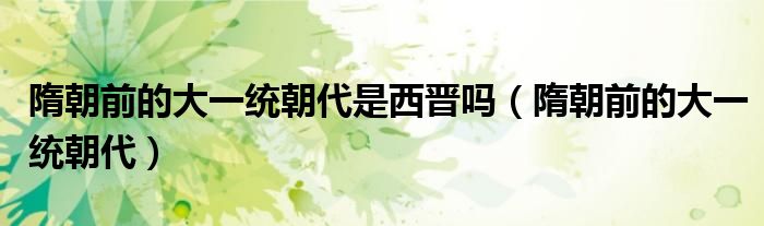 隋朝前的大一统朝代是西晋吗(隋朝前的大一统朝代)