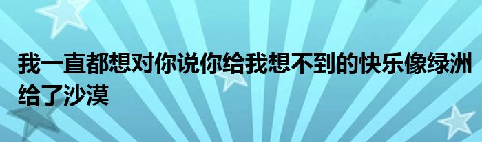 关于我一直都想对你说你给我想不到的快乐像绿洲给了沙漠这个很多人还不知道,今天菲菲来为大家解答以上的问题,现在让我们一起来看看吧!