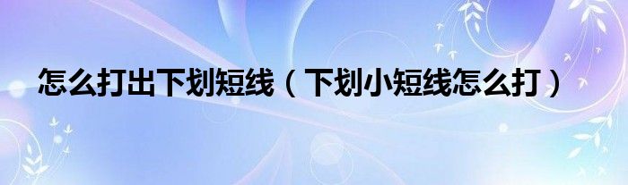 怎么打出下划短线(下划小短线怎么打)