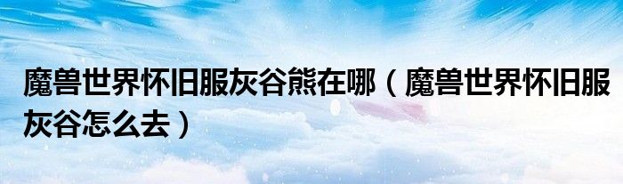 关于魔兽世界怀旧服灰谷熊在哪,魔兽世界怀旧服灰谷怎么去这个很多人还不知道,今天菲菲来为大家解答以上的问题,现在让我们一起来看看吧!
