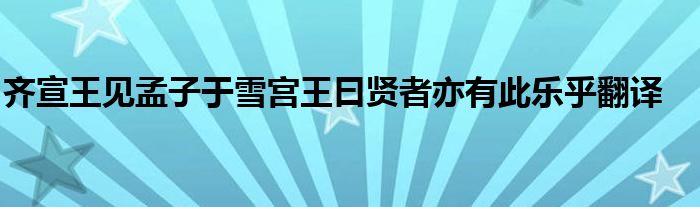 齐宣王见孟子于雪宫王曰贤者亦有此乐乎翻译